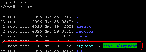 since the /var/ftproot is the shortcut pointing towards /extHD/ftproot. One other note, make sure you dont already have a pre-existing folder called /var/ftproot, else I noticed a weird shortcut in the form of /var/ftproot/ftproot/ being created. Of course, the original folder (/extHD/ftproot) must be pre-existing.