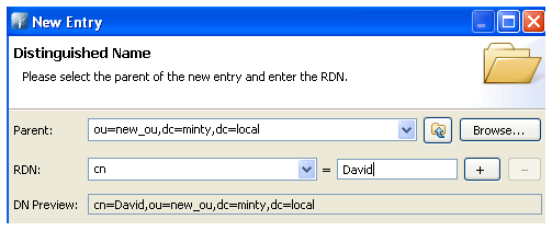 – As an RDN [relative distinguished name] Select “cn” and enter the user name