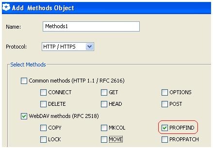 With sonicwall, this is a bit more involving but simple none the less. You will need an application firewall capable unit. Define an application object that includes the PROPFIND: