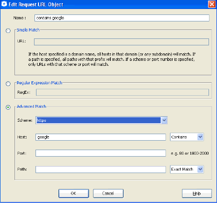 The source is set to any. You can of course change this to your needs. The destination is an object of “Request URL”, and is simple: