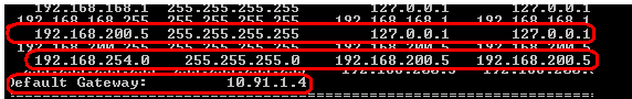 After running the connection you can see my default gateway remained 10.91.1.4 (my local LAN router), but I still have a route to the 192.168.254.0/24 subnet over my VPN (192.168.200.5)