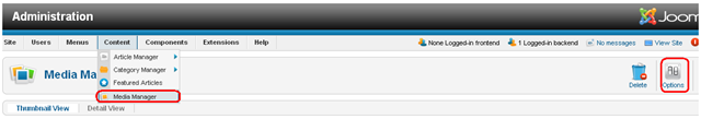 1. Access the administrator interface in joomla > content > media manager