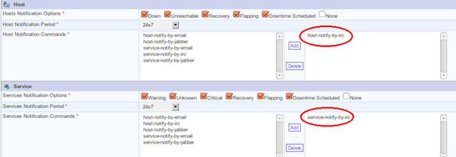 Click “Add” and define a command called “host-notify-by-irc”. You can send anything you need via IRC, below is what I used: