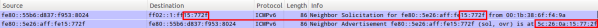Among the myriad of options, the most important to note is the “prefix information”, which the client uses to build it’s unique global address, using a combination of this prefix and it’s MAC address, without the need of any DHCP server. Similarly, IPv6 has done away with broadcasts, which also includes IPv4’s cornerstone ARP. Instead of ARP, IPv6 uses a similar mechanism to the one presented above, called neighbor solicitation and neighbor advertisement. It serves exactly the same function as ARP… translating a L3 IP address to a L2 MAC address, yet instead of using broadcasts which every node on the link must process, it uses a special form of multicast which only a few nodes will process. For example, we see two such packets here: