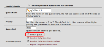 - You need at least one default queue per interface. This will act as a catchall. A default queue is defined as any other queue, with the difference of selecting the “default queue” option in “scheduler options”