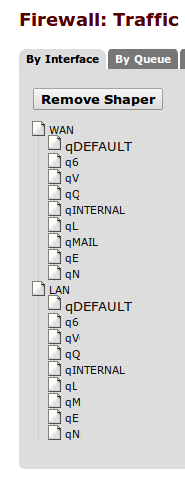 - The most efficient QoS is applied to egress traffic. In order to visualize this, imagine you are the firewall… egress traffic on your WAN interface is what we generally call “uploading” to the internet. Similarly, egress traffic on the LAN is generally called “downloading” from the internet. Keep this in mind when defining queues. If you need to define the same queue on two interfaces (symmetric traffic shaping) simply add a new queue to the interface and ensure you name the queue in exactly the same way as you did on the other interface, for example: