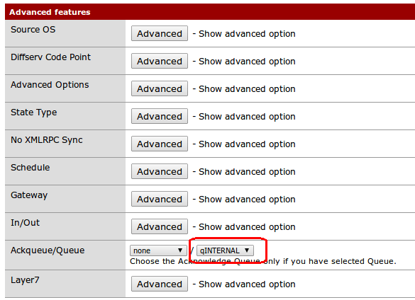 The rules allow you to classify traffic as any other firewall rule does, so you can limit by subnet, IP, service, protocol, etc… simply define the rule, and under the advanced section make sure to select the correct queue (second fiel – the first field is used for ingress QoS which we didnt use)