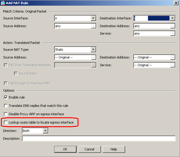 Note however that the option is only available when the source and destination interface in the NAT rule are not set to “any”.