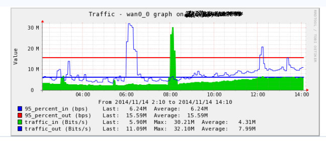 Plotting the 95th percentile on Centreon is currently not very straightforward but it is possible without too much hassle once you know what to do. This article documents what you have to do to get a proper bandwidth plot both incoming traffic and outgoing traffic’s 95th percentile.