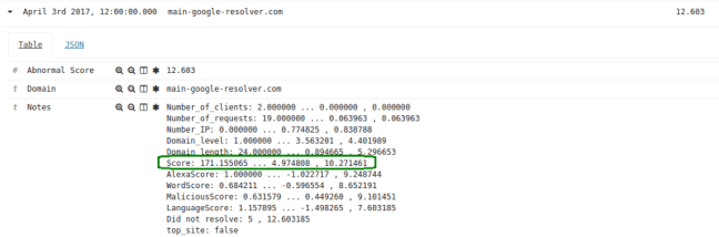 Again, the “Score” model comes to the rescue here. The model realizes that the word “google” is usually not seen in this context, and adds just enough point to make this domain anomalous (remember anything over 10.0 is considered worth investigating). Over and above that, the site in this case did not resolve, so this caused the DNS anomaly engine to push up the anomaly score even further.