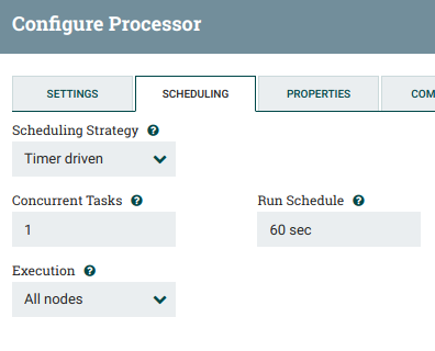 A reader pointed out that using ScrollElasticsearchHttp is not the best way to accomplish this. ScrollElasticsearchHttp is designed to only run once. After the query is completed, the processor records this in it’s local state and will not run again even if triggered to do so: