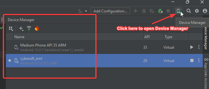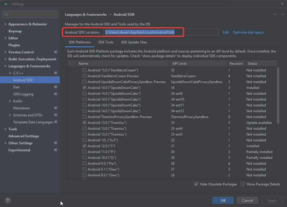 ⚠️ The above was run in windows… the important thing is to make sure you start the emulator by setting ANDROID_SDK_ROOT env variable properly. You can find this through Android Studio: