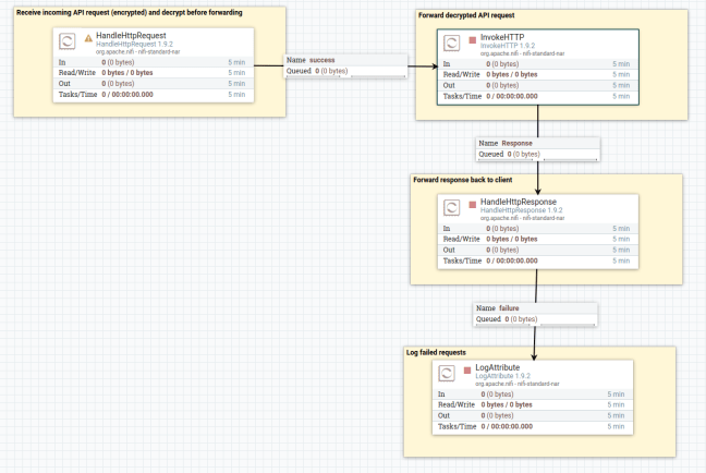 In this article we'll explain how to encrypt traffic going to an HTTP handler in NiFi, which is then forwarded to a backend HTTP server - in other words, an SSL offloading reverse proxy. Encrypting traffic in transit to NiFi involves the following steps: Creating a keystore containing a CA certificateCreating a truststore, which contains … Continue reading Encrypting traffic in transit to Apache NiFi